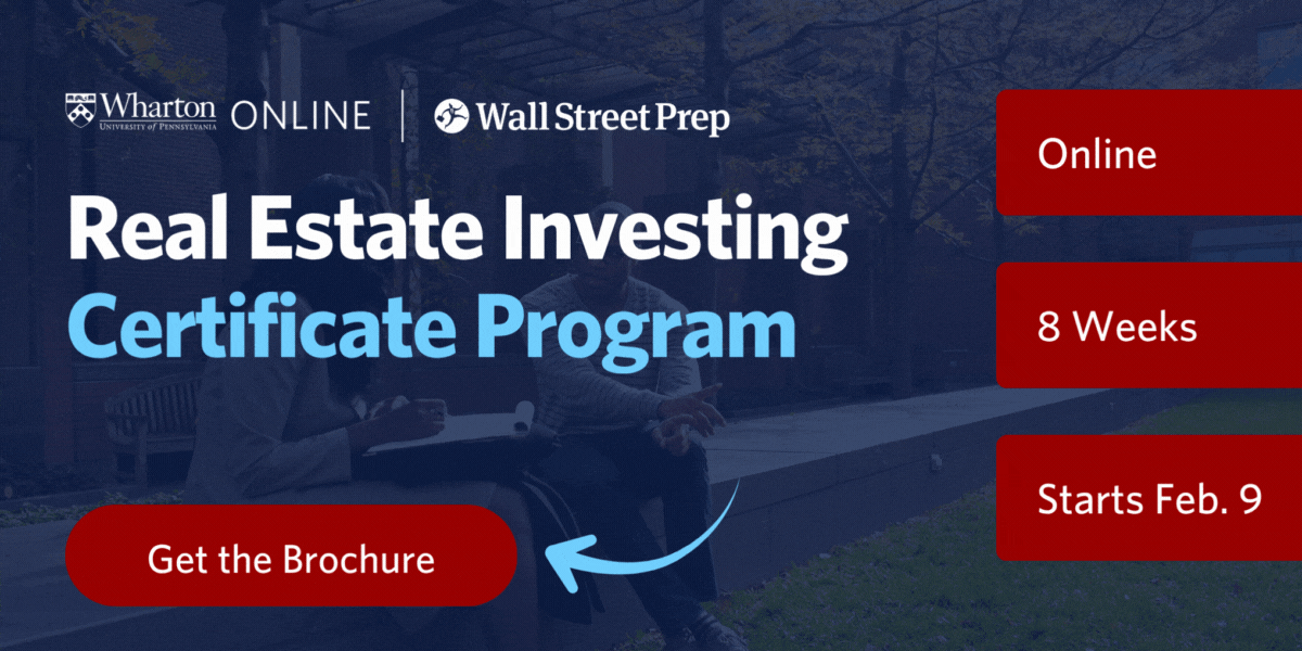 Gain the skills top firms demand with the Wharton Online + Wall Street Prep Real Estate Investing & Analysis Certificate.